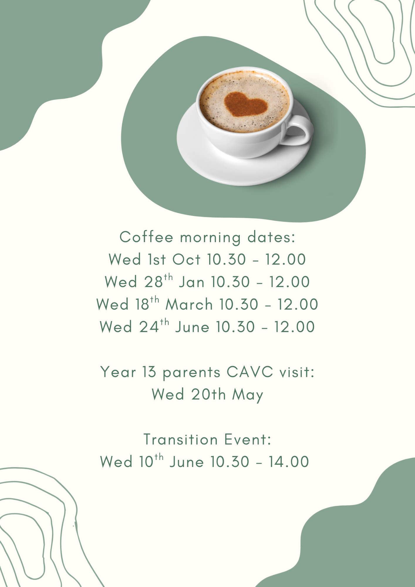 We are setting our Transition Coffee Morning dates for this year. Please come along to enjoy a cup of coffee with the team. If any of these dates have to change, we will update the website. Invitation letters will be sent out to all parents/carers.